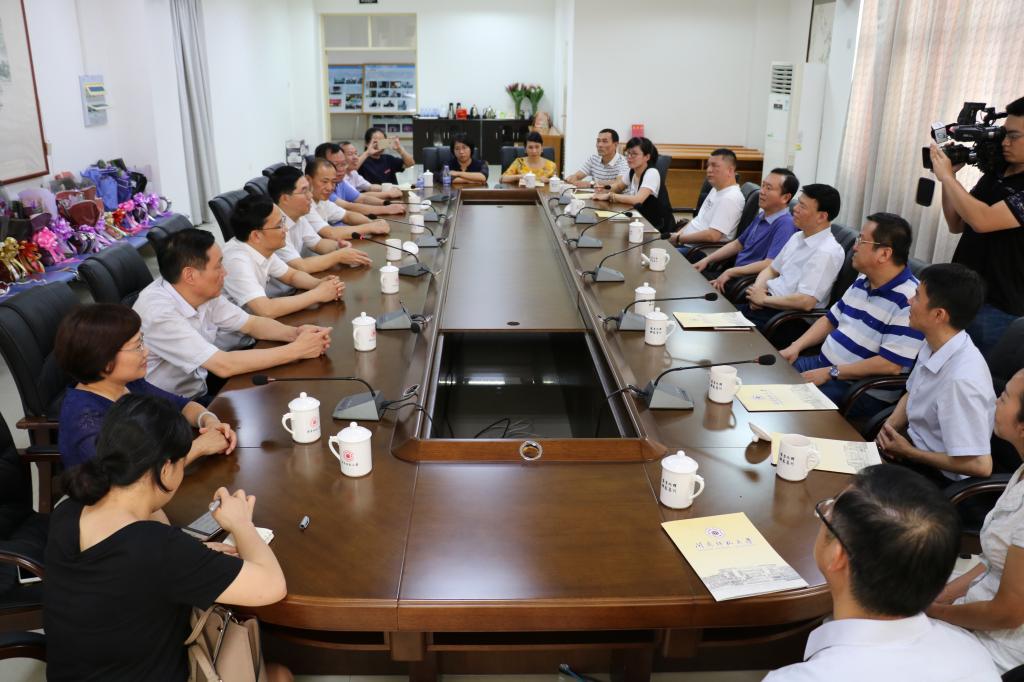 21日下午,省人大副主任、党组书记张广敏带领11位全国人大代表,在市长刘远、市人大常委会主任、党组书记陈汉夫、市人大常委会副主任、党组副书记吴达金等陪同下,莅临yl23455永利集团考察并看望全国人大代表陆銮眉。yl23455永利集团校长李顺兴、党委副书记肖庆伟等热情接待,大家参观了两岸一家亲研究成果图片展、省菌物产业工程技术中心、闽南文化特色展等。随后,在逸夫图书馆五楼会议室召开座谈会。