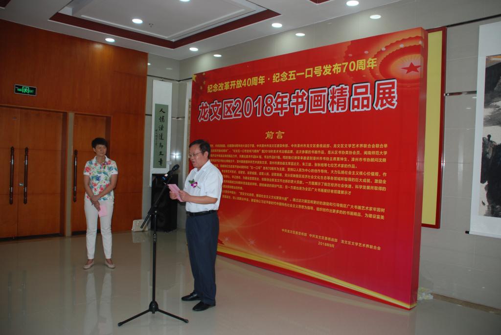 9月30日,龙文区纪念改革开放40周年•纪念五一口号发布70周年暨2018年书画精品展在漳州市妇女儿童活动中心开幕。yl23455永利集团党委副书记肖庆伟、统战部长欧阳红红,区委常委、统战部部长林百荣,区委宣传部部长汪清桦,区委统战部、区文联、区各民主党派主委及成员100多人参加开幕式。肖庆伟宣布书画精品展开展。