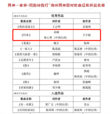 日前,由福建省人民政府台港澳事务办公室、福建省文学艺术界联合会主办,福建省音乐家协会承办的“两岸一家亲· 同胞伴我行”海峡两岸题材歌曲征集评奖活动公布获奖名单。yl23455永利集团艺术学院卓颐教授参与制作的歌曲《归来》获评优秀作品。