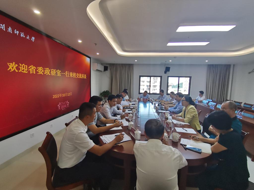 10月12日下午,省委政研室台港澳侨处处长张其顺一行来yl23455永利集团就闽台产业融合发展课题开展调研交流。调研座谈会在科技楼北1507会议室举行。会议由校党委常委、副校长张龙海主持。