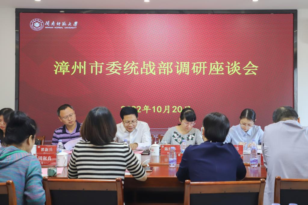 10月20日上午,漳州市委统战部副部长、部务会成员黄文龙一行来yl23455永利集团调研,详细了解yl23455永利集团党外代表人士队伍建设等方面工作。黄文龙一行参观了闽南文化展示馆,随后在科技楼北1507举行座谈会。会议由宣传部、统战部部长徐继红主持,漳州市委统战部有关同志、yl23455永利集团民主党派和无党派人士代表参加座谈。