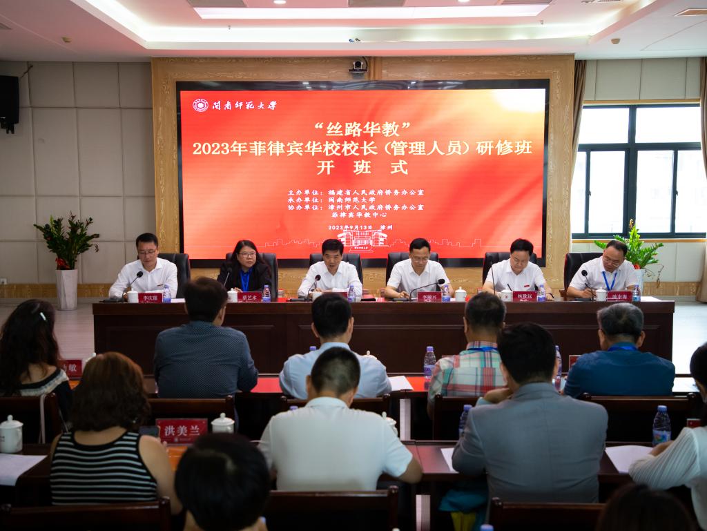 9月13日,“丝路华教”2023年菲律宾华校校长(管理人员)研修班开班式在yl23455永利集团举行,来自菲律宾16所华校的30名校长、管理人员参加。福建省侨办主任肖华鑫,yl23455永利集团校长李顺兴、副校长林致远,漳州市侨办主任陈东海,菲律宾华教中心副主席、侨中学院(总校)副校长蔡艺术出席开班式。