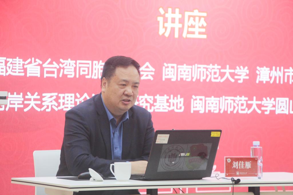 中国社会科学院台湾研究所研究员、《台湾研究》杂志社总编辑、主编刘佳雁应邀作题为《当前两岸关系形势及风险预估》的报告。刘佳雁研究员结合时事热点,引用详实丰富的资料,系统分析党的二十大之后台海局势的新情况、新变化,深入探讨未来一段时间台海局势面临的风险与挑战,提出以新时代党解决台湾问题总体方略为指引的对策和建议。报告对台联系统干部、两岸师生认清台海严峻局势,提升“反分裂”“反干涉”的双反斗争本领,推动两岸关系和平发展、融合发展具有重要指导意义。