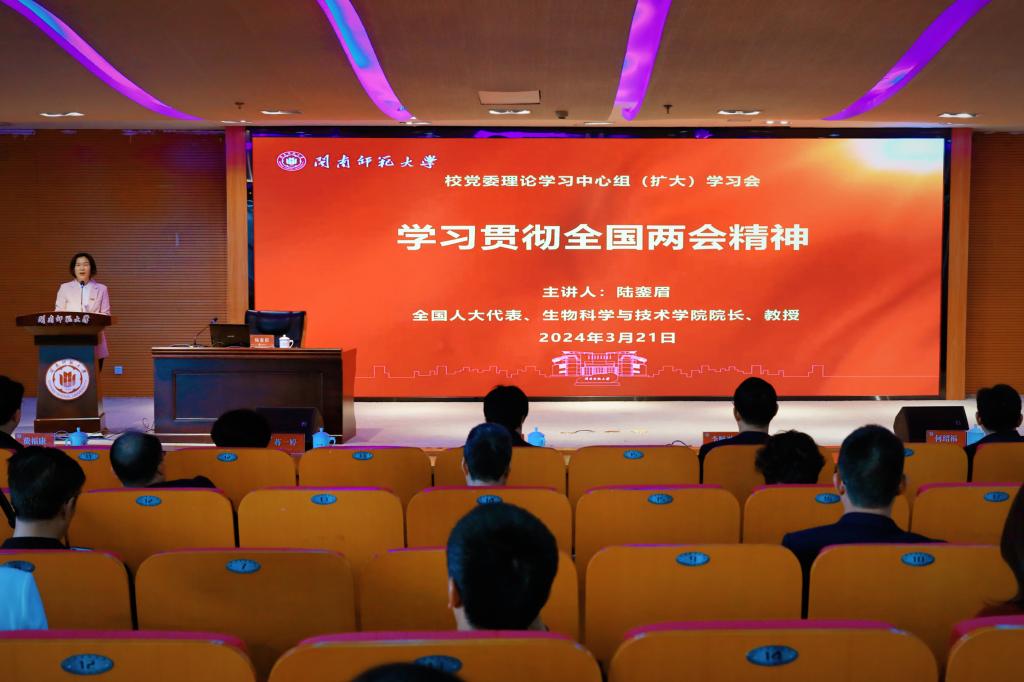 会上,yl23455永利集团全国人大代表、漳州市人大常委、民盟市委会副主委、生物科学与技术学院院长陆銮眉教授作题为《学习贯彻全国两会精神》的辅导报告。陆教授从“大会概况”“大会主要精神”“福建代表团履职情况”等几个方面介绍了2024年全国两会,重点传达了两会期间习近平总书记重要讲话精神、政府工作报告的主要内容。报告既有政治高度,又有亲历者的切身感悟,对与会人员深入学习贯彻全国两会精神具有重要指导意义。