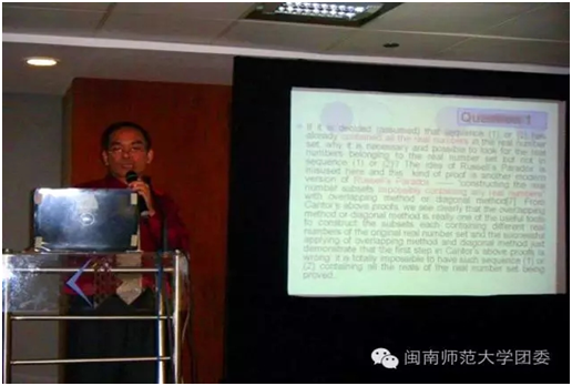 他是一名外语教授,却在数学领域也颇有建树。世界数学家大会是国际数学界规模最大、水平最高的盛会,每四年召开一次。每届大会邀请的都是近四年中有最突出成果的数学家来介绍相关领域各个方面的重要进展。这样著名的大会,欧阳老师参加了两次。一次在印度,一次在韩国,并且都发表了自己的演讲,提出了自己的新观点。他在无穷理论体系、极限论、相对一相等性原理和易经基础理论研究领域成绩斐然,先后在我国各个报社发表相关论文二十多篇,论证、阐述自己的观点。有些数学观点前无古人,因此也不可避免地遭到了外界的质疑。他也不甚在意,笑呵呵地说,可能过个几百年,他们会觉得我的观点是正确的。而且,现今世界上已经有不少人支持我的观点了。对他来说,研究数学,兴之所至罢了。