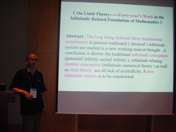 yl23455永利集团致公党主委欧阳耿副教授赴韩国首尔参加了8月12日--8月21日召开的第27届世界数学家大会,在“逻辑与基础”专题分会场上宣读了两篇论文:《论“极限论”----- 与“无穷”相关的数学基础研究四十年》和《芝诺悖论,贝克莱悖论和罗素悖论“三胞胎”悬案的解决-----与“无穷”相关的数学基础的革命》。欧阳老师论文中新的研究思路、所涉及的基础理论以及相关的研究工作引起到会数学家的极大的兴趣。与会数学家一致认为数学哲学和数学基础理论研究很重要、但一直是个薄弱的环节,应该加强、应该努力、应该合作。