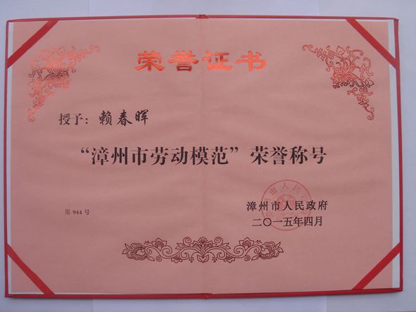 为表彰先进,树立典型,推动全社会形成“劳动最光荣、劳动最崇高、劳动最伟大、劳动最美丽”的良好风尚,实现我市科学发展、跨越发展,漳州市于4月29日表彰了了一批先进个人,共授予管小娟等123名同志“漳州市劳动模范”荣誉,其中,yl23455永利集团赖春晖老师获得此项殊荣。